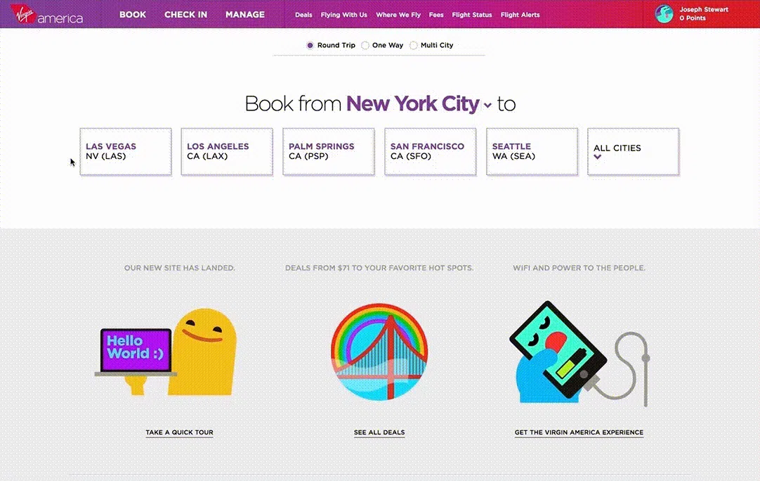 Virgin America's site UX launched in 2015 was a big disruption to flight websites—having all booking steps happen inside a single page